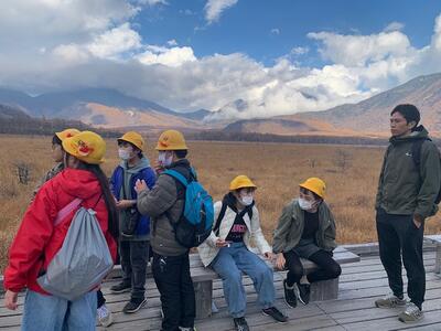 班の友だちとなごやかに談笑しながら木道や山道を歩きました。