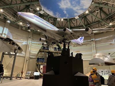 飛行機が展示されています。飛行機の小さな模型もたくさんあります。