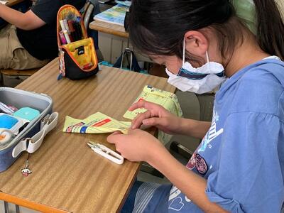 折り方を工夫したり、いろいろな切り方をして、かざりをつくりました。