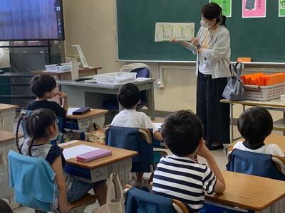 9月に、メキシコ、ブラジル、中国出身の講師をお呼びして「多文化共生」について出前講座を受けた5年生。