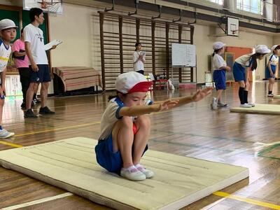 1年生は「玉入れ」の競技です。リズミカルにダンスをしてからの玉入れです。とてもかわいいです。