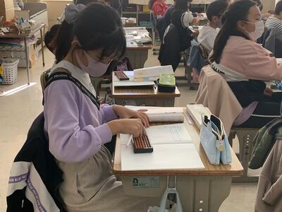 3年生で学習したそろばんの使い方を思い出しながら、繰り上がりに気を付けて行いました。