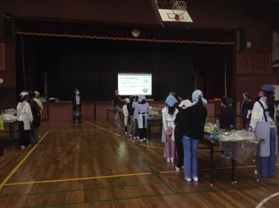 給食室でもハロウィン気分を味わいながら、調理員さんたちが楽しみながら作っていました♬