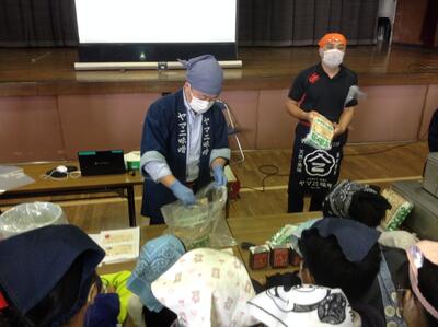 後半は佐倉市で長年味噌づくりに携わっているお味噌屋さんの職人さんから作り方を実演していただき、その後、