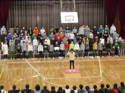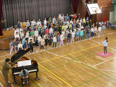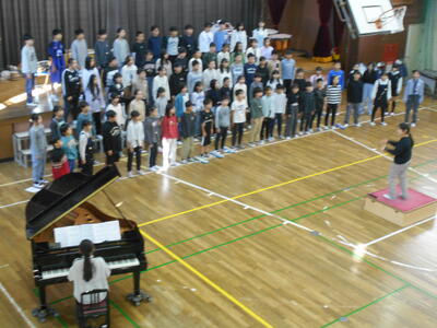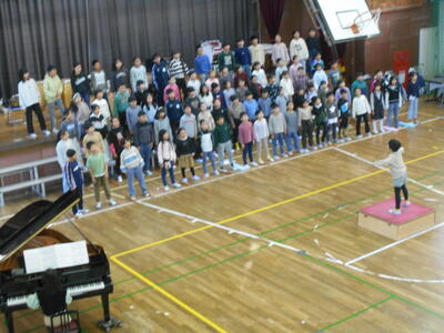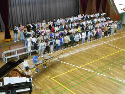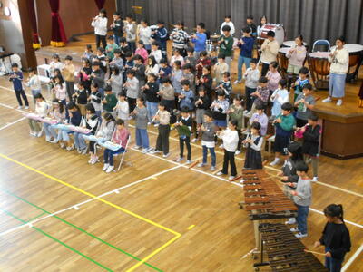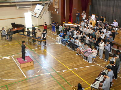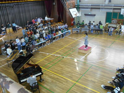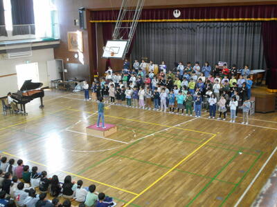 7月18日、夏休みを迎える会終了後、代表委員の進行で、千葉県吹奏楽コンクールに出場するブラスバンド部の壮行会を行いました。ブラスバンド部の子どもたちは、日頃の練習の成果を十分に発揮していました。演奏後、全校で応援のメッセージを送りました。