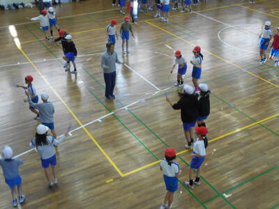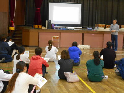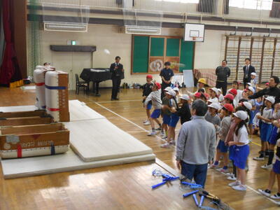 7月11日、6年生は安全教育の一環として、着衣泳を行いました。消防署の水難救助隊の方に来校していただき、水の事故に遭遇したときの、対処の仕方を教えていただきました。