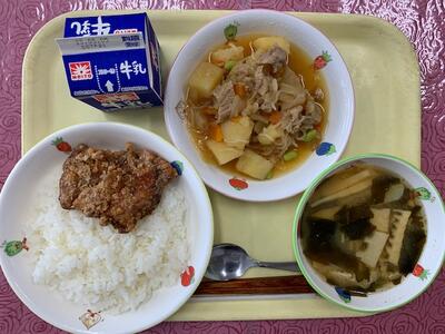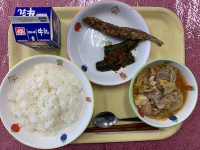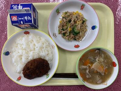 (献立): ごはん、牛乳、酢豚、胡瓜のおかか和え、中華スープ
