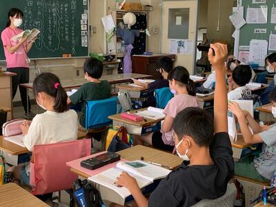 ゲーム形式の授業に子どもたちはノリノリでした。