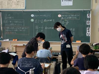 子どもたちは、分母と分子をそれらの公約数でわることで、分母の小さい分数にするということが理解できたようです。