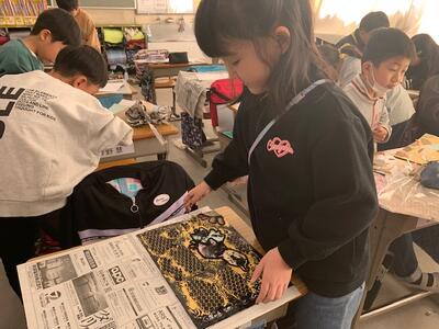 3年生は、図工で版画の授業をしていました。