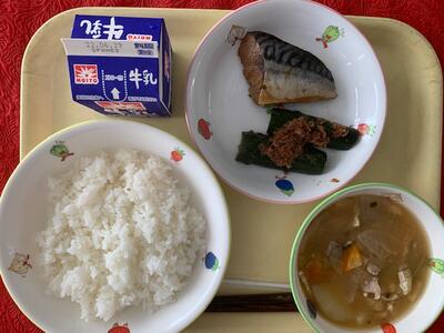 献 立 : ごはん、さばの甘露煮、胡瓜の土佐和え、みそ汁、牛乳