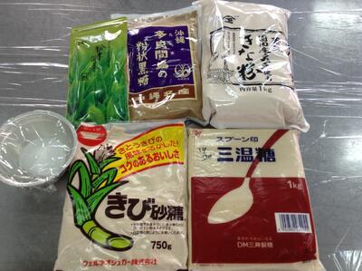 沖縄県多良間島産の黒糖、きび砂糖、三温糖、きな粉、塩を使用しています。