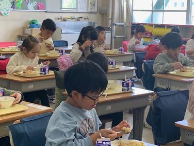時間がかかりそうなので、しばらくの間は前を向いて食べるようにします。いずれは班になっておしゃべりをしながら食べたいですね。