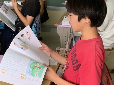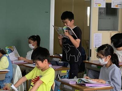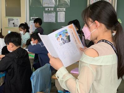 「大洲小学校の児童は、とても元気があります。そして、校庭が広いので、先生や友だちとたくさん遊ぶことができます。是非、一緒に遊びましょう」と、児童の代表が歓迎のあいさつをしてくれました。
