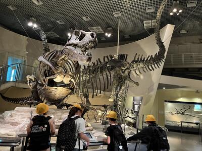 恐竜の骨格標本も迫力満点。みんな熱心に見学していました。