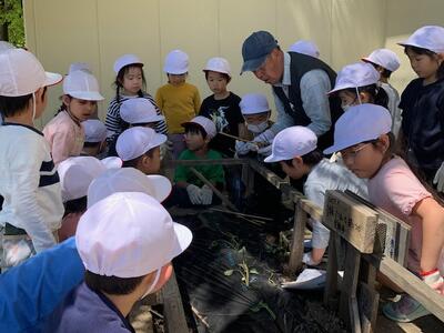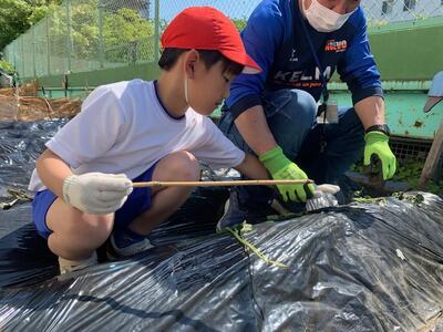 「さつまいもは何月にできますか?」1年生は収穫まで待ちきれない様子です。