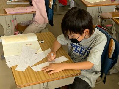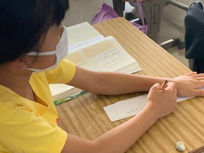 今日は、お友だちのすてきなところを短冊のメモに書き、言葉にして伝えていました。