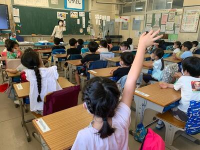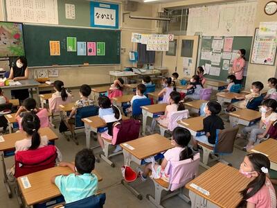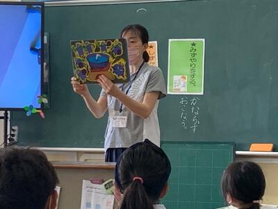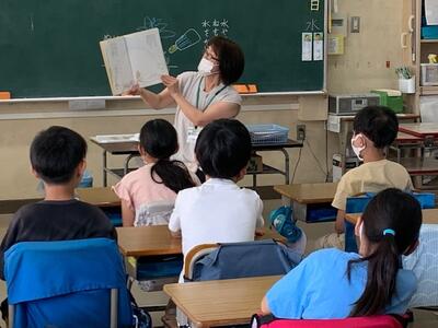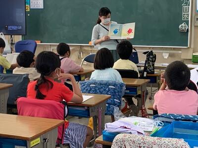 今月の「ミニ読書月間」にあわせ、毎週水曜日の朝、保護者、地域のボランティアの方々に「読み聞かせ」をしていただいています。今日で4回目です。