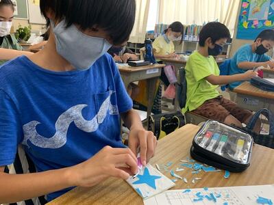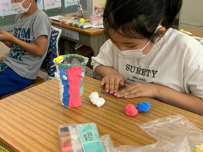 色付きの紙粘土を作っては貼り、貼っては作りの作業を積み重ねて完成させます。作業している子供たちは真剣そのものです。