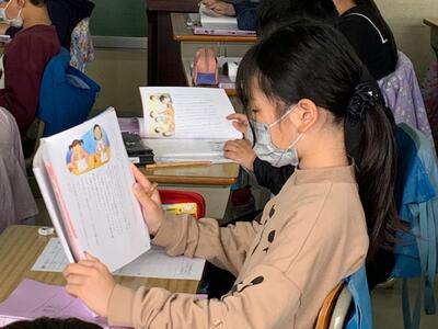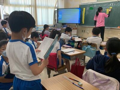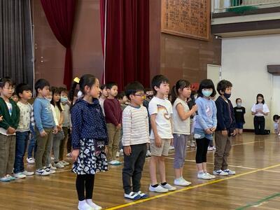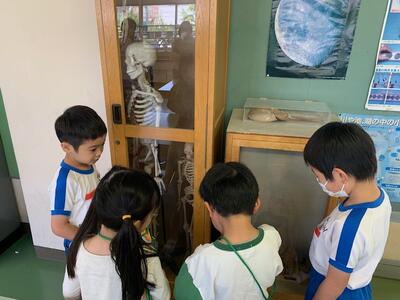 2階以外の階になかなか行く機会がない1年生。理科室や音楽室などの特別教室もはじめて入ります。大洲小学校にはどんな教室があるのか、楽しみです。