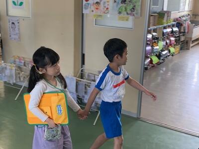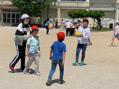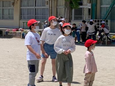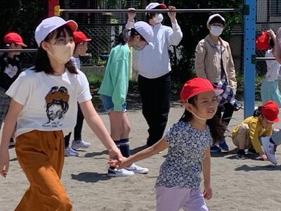 早速、1年生は6年生と仲良く遊んでいました。