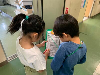 1年生と2年生のペアは、計画にしたがって、時間の許す限り学校内をまわりました。