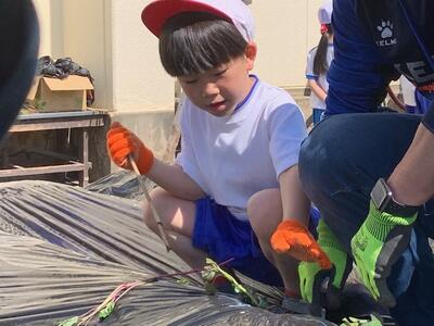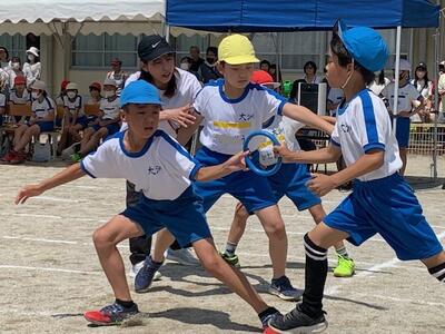 3年生の団体競技は「ぐるぐるタイフーン」です。練習の成果が発揮できたようです。