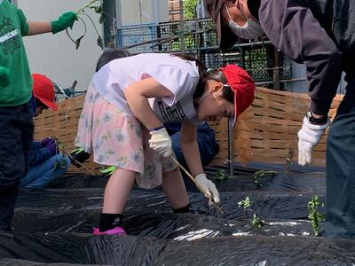 1年生が、サツマイモの苗を植えました。