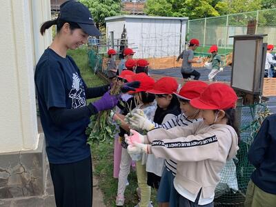 「さつまいもは何月にできますか?」1年生は収穫まで待ちきれない様子です。