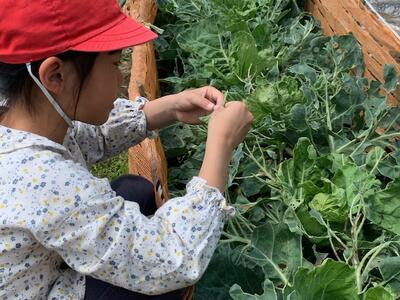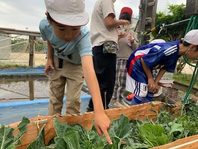 今日は、学校園に植えられているキャベツ畑で、モンシロチョウの卵を見つけました。