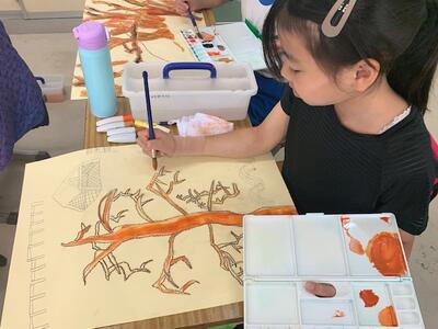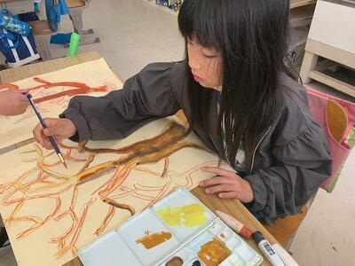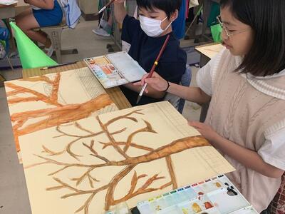 幹と枝の次は、葉と背景の着色にかかります。どんな作品が完成するのか楽しみです。