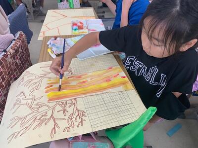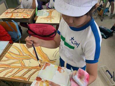 自分の表したいことをイメージしながら、絵に表し、色づくりや筆の使い方を学んでいます。