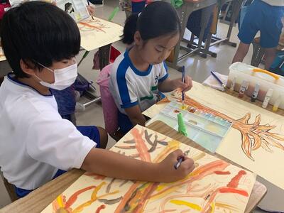 4年生の図工では、「木々を見つめて」に取り組んでいます。