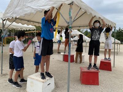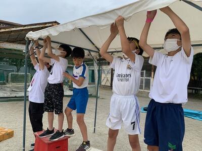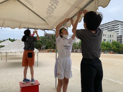 今日は、PTAのボランティアの方々がテント張りのお手伝いをしてくださいました。