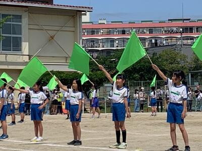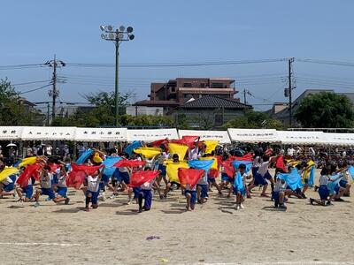 最後は表現演技です。4年生は布とフラッグを使ってダンスを披露しました。