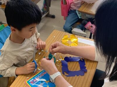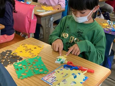 1年生:図工「チョッキン パッで かざろう」