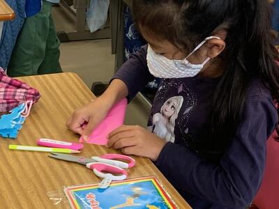 折り方を工夫したり、いろいろな切り方をして、かざりをつくりました。