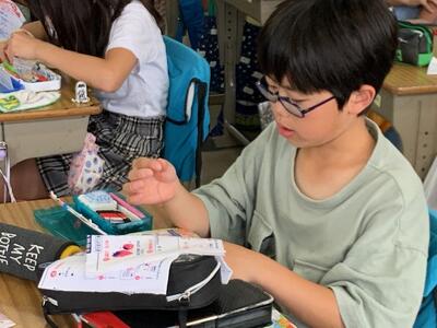 伝言板のデザインは、前の時間に考えてあります。ペンギン、ふくろう、ネコ、クジラなど、動物をモチーフにしたものが多いようです。どれもすてきなデザインです。