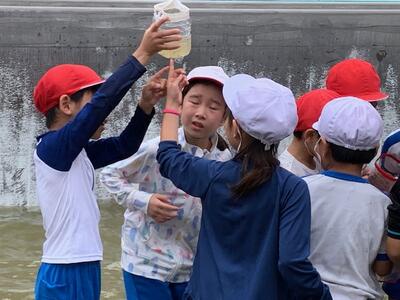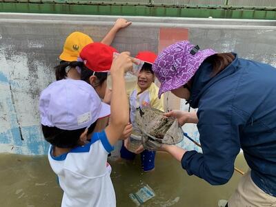 プール清掃の前に、恒例のヤゴ採集をしました。