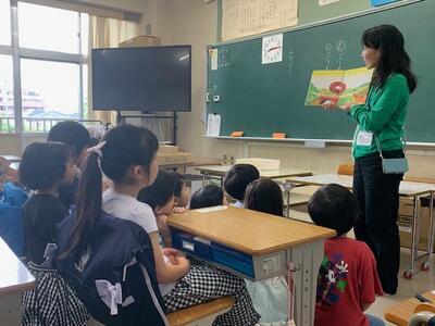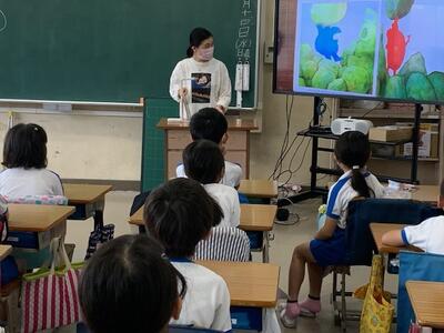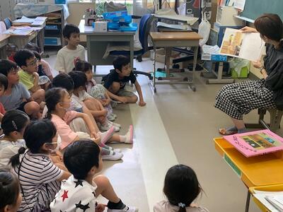 「ミニ読書月間」の6月は、水曜日の朝に、保護者や地域のボランティアの方々に「読み聞かせ」をしていただいています。今日は2回目です。