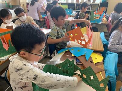 9月に、メキシコ、ブラジル、中国出身の講師をお呼びして「多文化共生」について出前講座を受けた5年生。