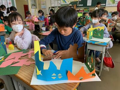 2年生は「お話びじゅつかん」という読書活動をしています。