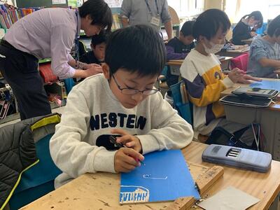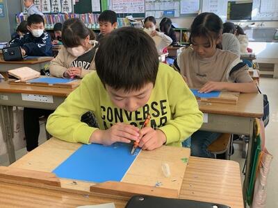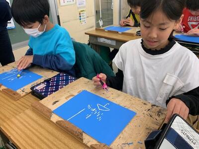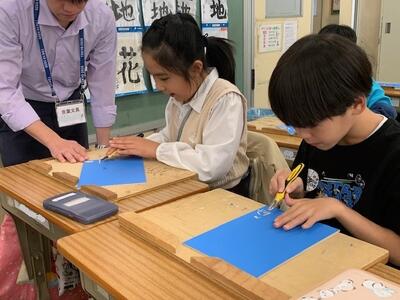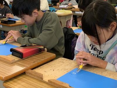 今日は、京葉文具さんに、「彫刻刀教室」の出前授業をしていただきました。