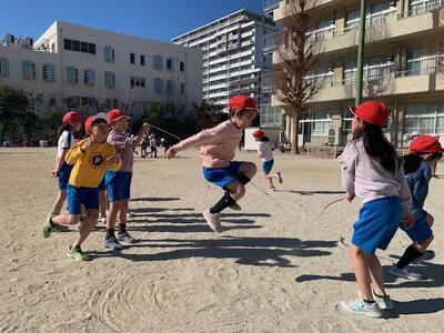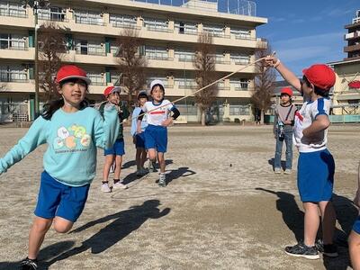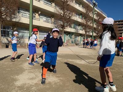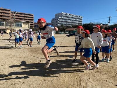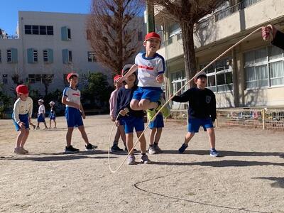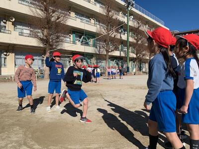 上手に跳べるようになりました。縄をまわす人も上手です。練習の成果があらわれています。