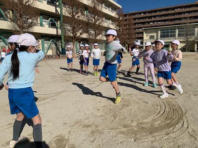 2年生は、早くも「ながなわ」の練習に取り組んでいます。
