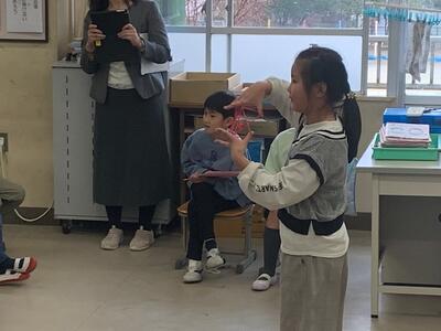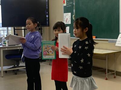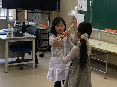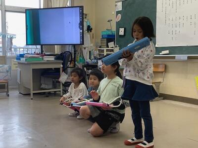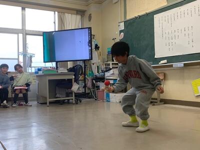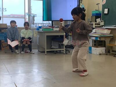 コマ回し、計算、百人一首、お手玉、けん玉、鍵盤ハーモニカ、なわとび、あやとり、お絵かき、きれいな字など、自分ができるようになったことを発表しました。