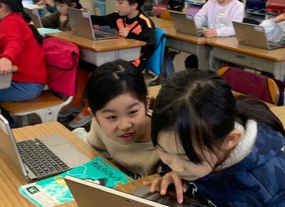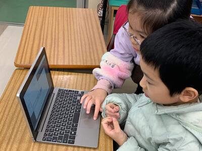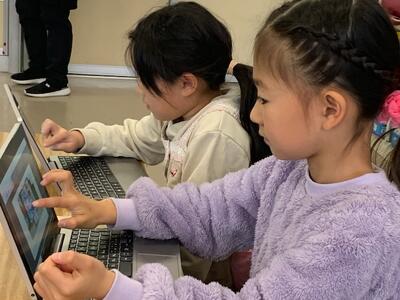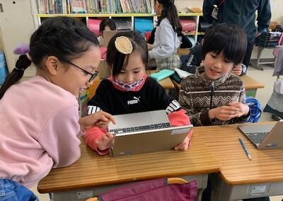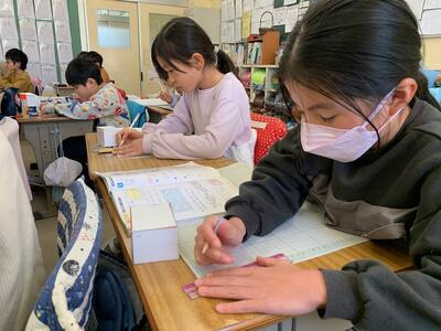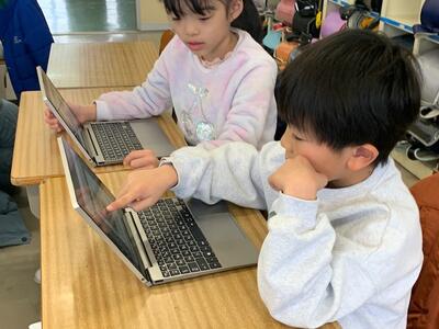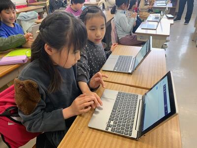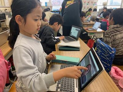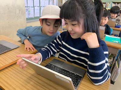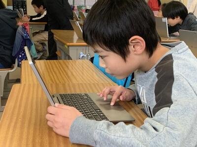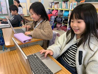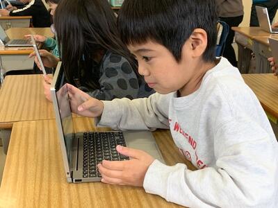 タブレットを使った授業にもだいぶ慣れてた2年生。