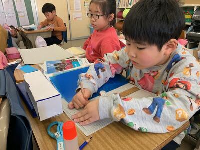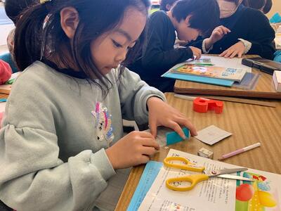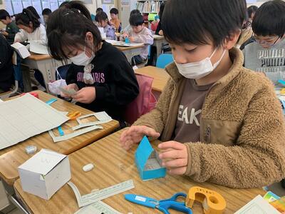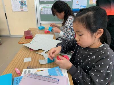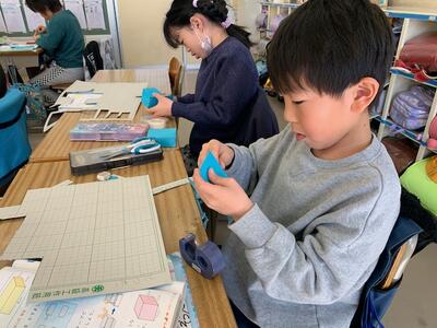 今日は、面の数や形に注目をして工作用紙を使ってはこをつくります。