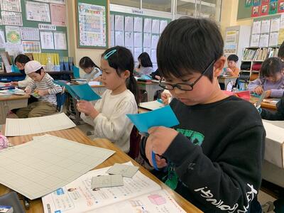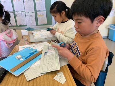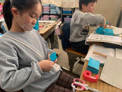 向かい合う面の形は同じです。それがいくつ必要かを理解して、楽しみながらはこづくりに取り組みます。