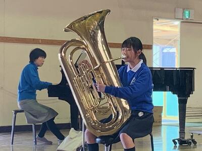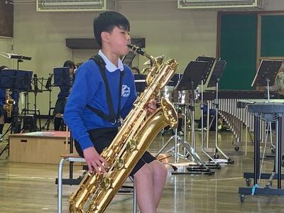 はじめに、ホルン、チューバ、バリトンサックスの各奏者が独奏を披露。